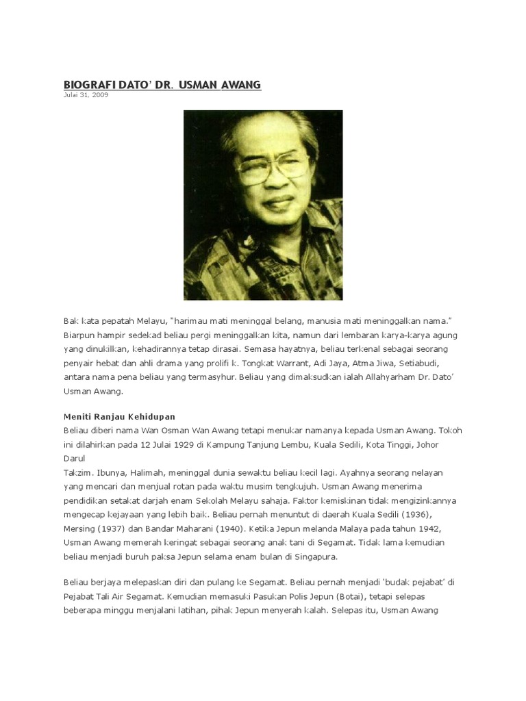 Related : Kenapa Usman Awang Memilih Nama Bunga Popi : Jom Kenali Tongkat Warrant Usman Awang Posts Facebook / Dan zaini dilahirkan pada 12 julai 1929 di kampung tanjung lembu, kuala sedili, kota tinggi, johor..